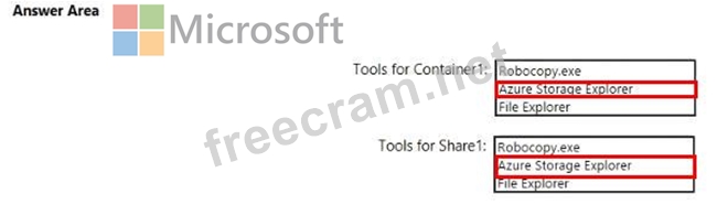 Which tool can you use to access the contents in Container1 and Share! by using the SAS? To answer, select the appropriate options in the answer area.