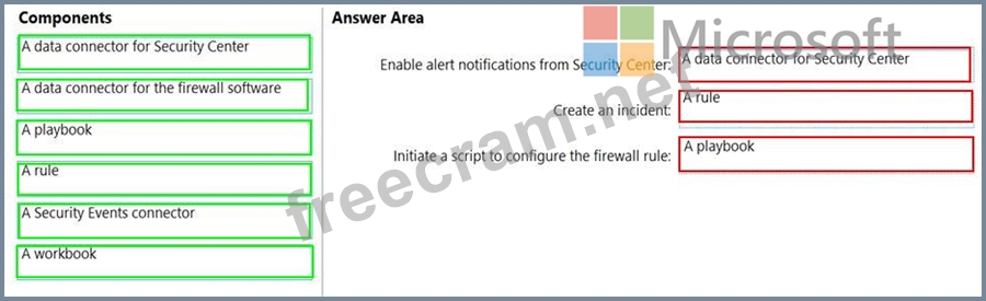 How should you configure Azure Sentinel to meet the requirements? To answer, drag the appropriate components to the correct requirements. Each component may be used once, more than once, or not at all. You may need to drag the split bar between panes or scroll to view content.