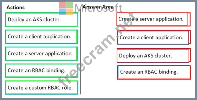 Which four actions should you perform in sequence? To answer, move the appropriate actions from the list of actions to the answer area and arrange them in the correct order.