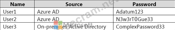 Your network contains an on-premises Active Directory domain named adatum.com that syncs to Azure Active Directory (Azure AD).