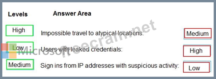 Which level should you identify for each risk event? To answer, drag the appropriate levels to the correct risk events. Each level may be used once, more than once, or not at all. You may need to drag the split bar between panes or scroll to view content.