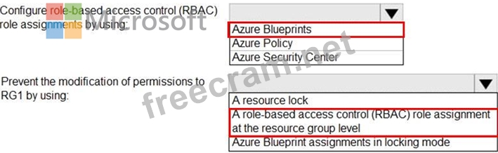 You need to ensure that for each subscription RG1 meets the following requirements: