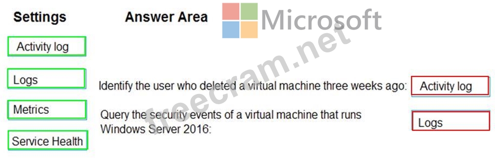 Question 85: You need to ensure that the AzureBackupReport log for the Va...