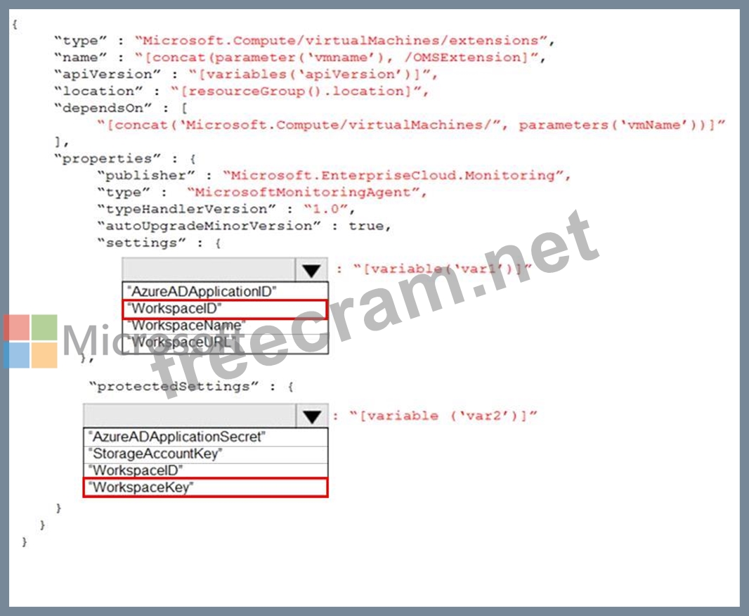 You need to automate the deployment of the Microsoft Monitoring Agent to all the servers by using an Azure Resource Manager template.
