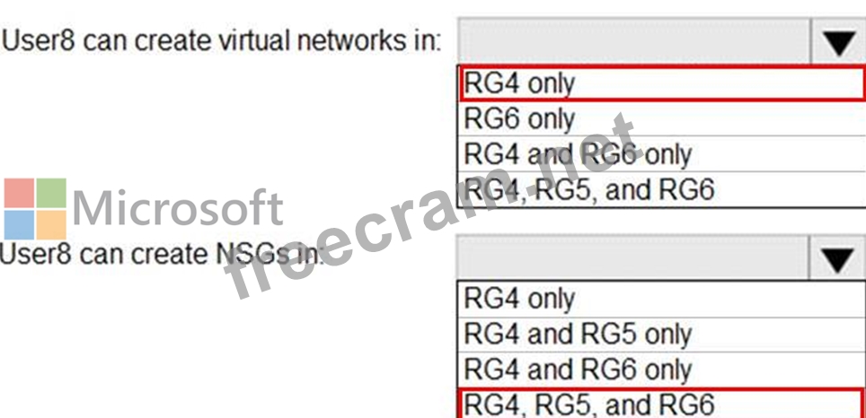 Question 105: You assign User8 the Owner role for RG4, RG5, and RG6. In wh...