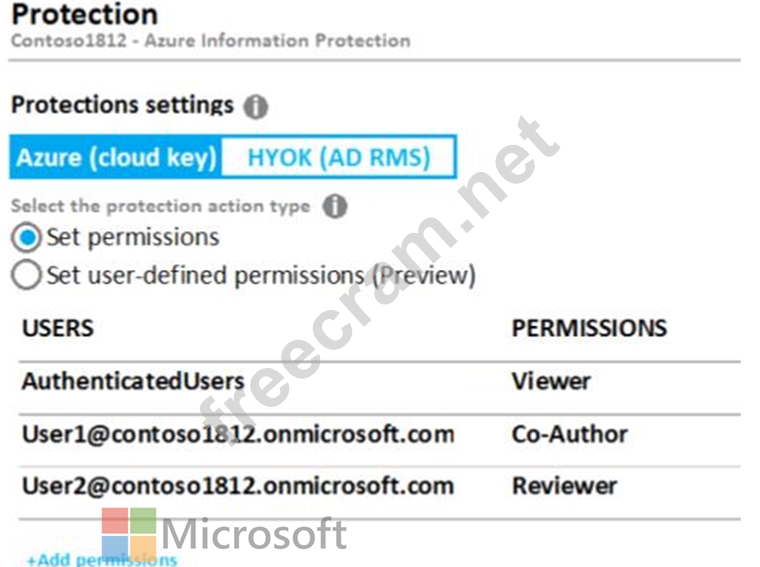 You create an Azure Information Protection label named Label1. The Protection settings for Label1 are configured as shown in the exhibit. (Click the Exhibit tab.)