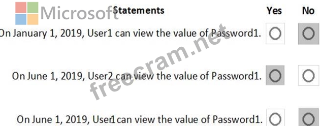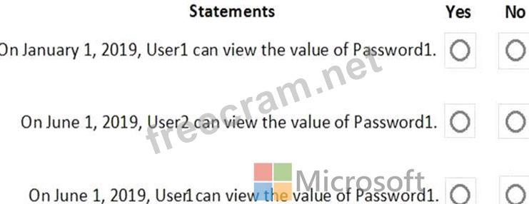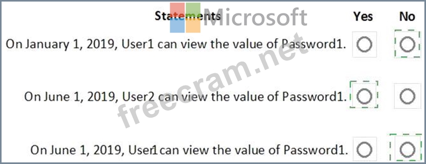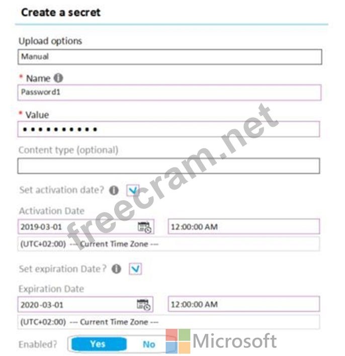 On January 1, 2019, you create a secret in Vault1. The secret is configured as shown in the exhibit. (Click the Exhibit tab.)