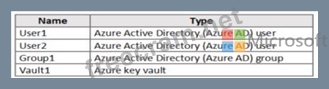 User1 is a member of Group1. Group1 and User2 are assigned the Key Vault Contributor role for Vault1.