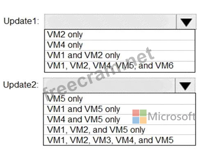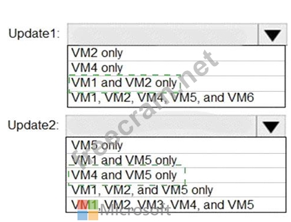 Which additional virtual machines can be updated by using Update1 and Update2? To answer, select the appropriate options in the answer area.