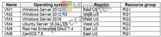 You have Azure virtual machines that have Update Management enabled. The virtual machines are configured as shown in the following table.