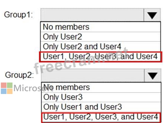 What is the membership of Group1 and Group2? To answer, select the appropriate options in the answer area.