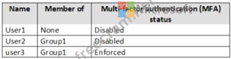 You have an Azure Active Directory (Azure AD) tenant named contoso.com that contains the users shown in the following table.