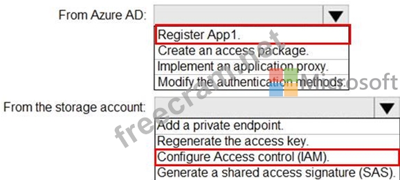 You need to enable App1 access to container1 by using Azure Active Directory (Azure AD) authentication.