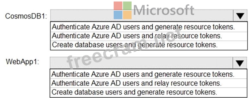You need to identify which tasks will be implemented in CosmosDB1 and WebApp1.