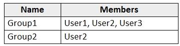 You network contains an on-premises Active Directory domain that syncs to an Azure Active Directory (Azure AD) tenant. The tenant contains the users shown in the following table.