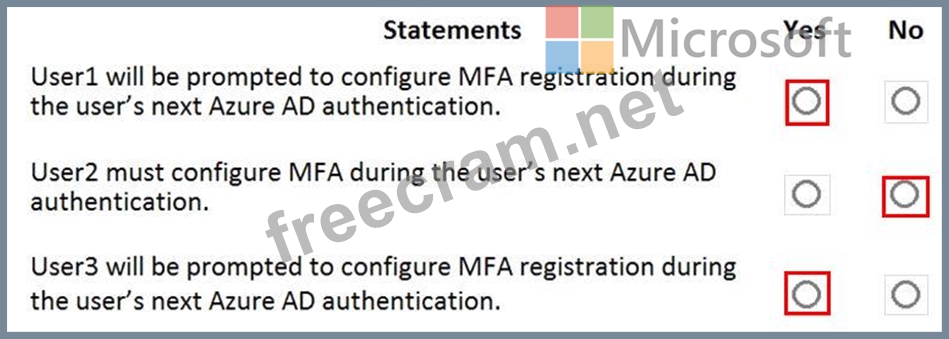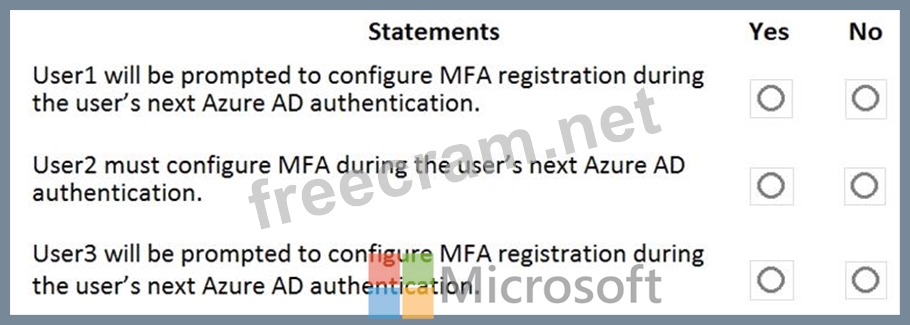 You configure a multi-factor authentication (MFA) registration policy that and the following settings: