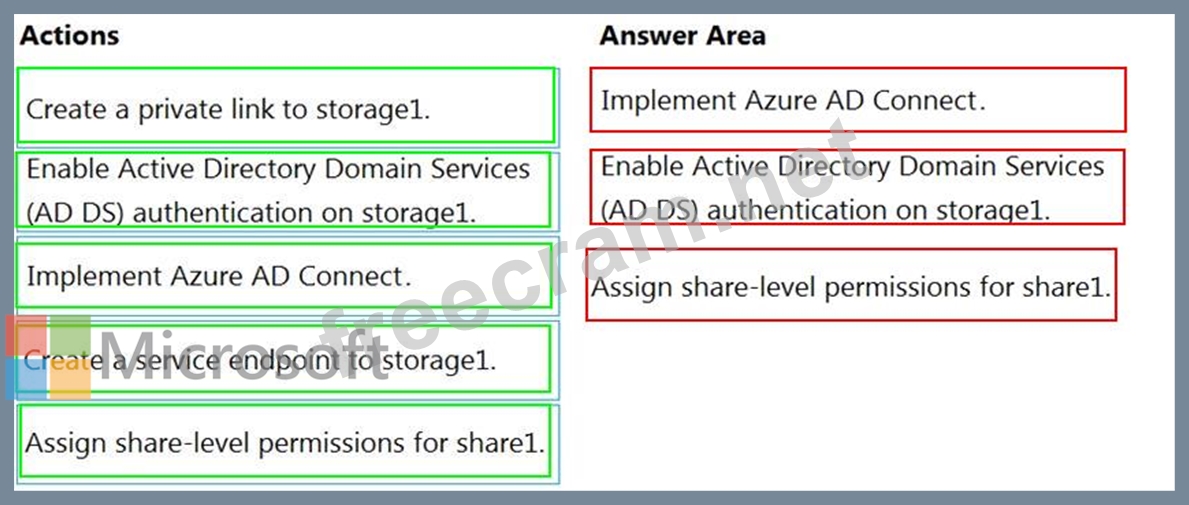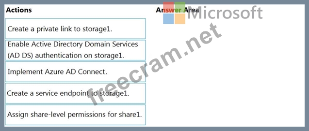 You have an Azure subscription that is linked to an Azure Active Directory (Azure AD) tenant named contoso.com. The tenant contains an Azure Storage account named storage1. Storage1 contains an Azure file share named share1.
