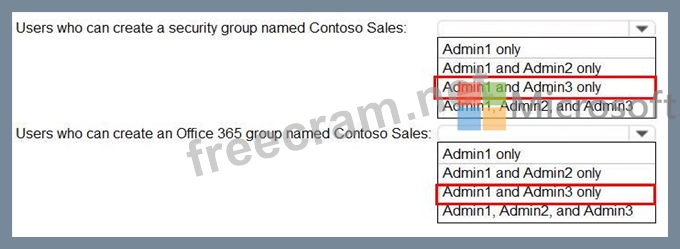 Which users can create a group named Contoso Sales in contoso.com? To answer, select the appropriate options in the answer area.