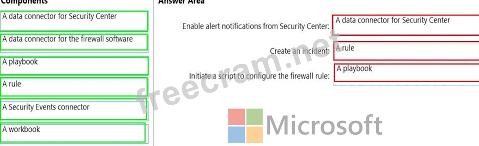 How should you configure Azure Sentinel to meet the requirements? To answer, drag the appropriate components to the correct requirements. Each component may be used once, more than once, or not at all. You may need to drag the split bar between panes or scroll to view content.