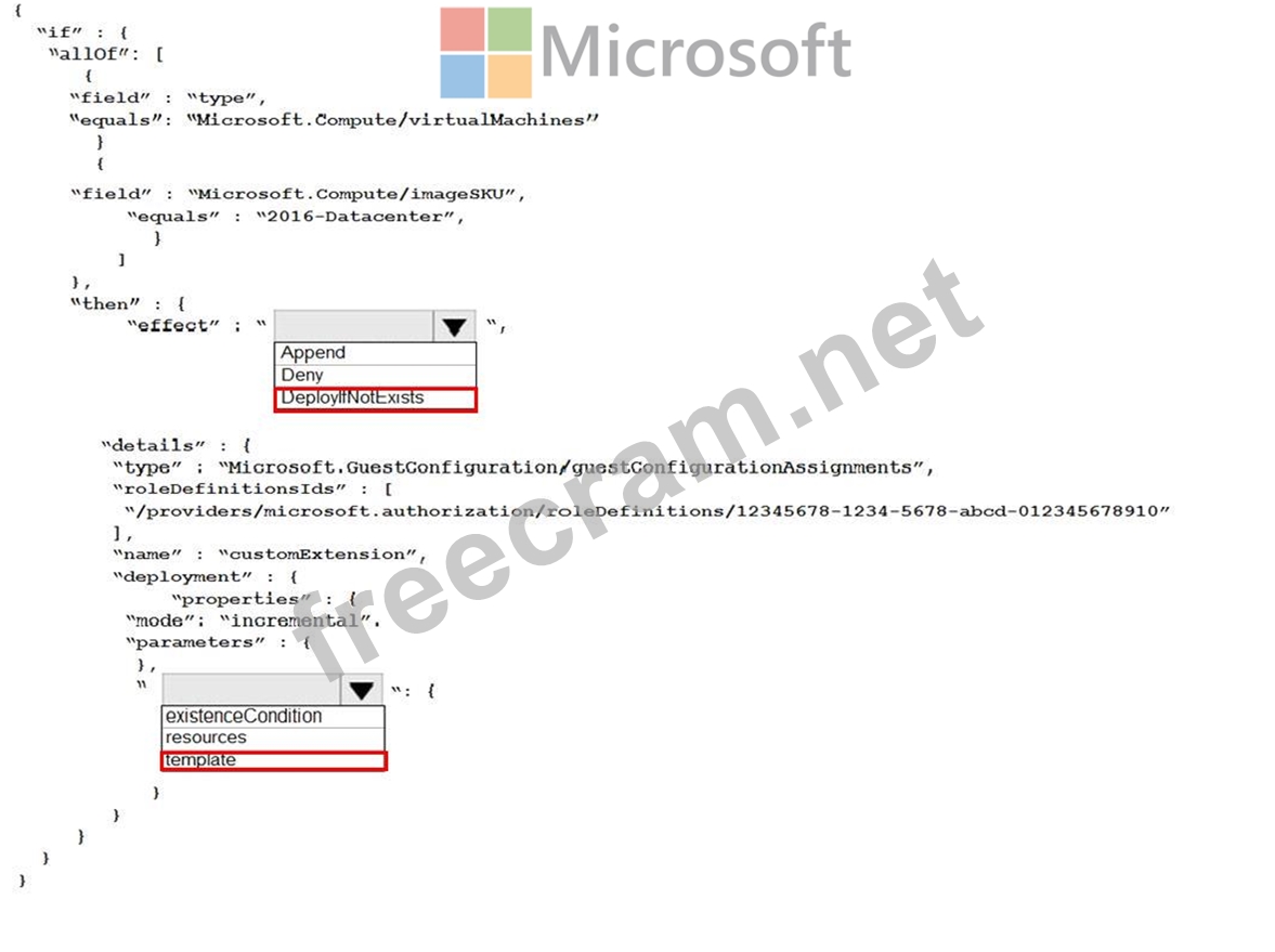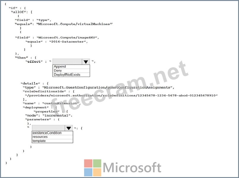 You need to implement a policy to ensure that each virtual machine has a custom antimalware virtual machine extension installed.