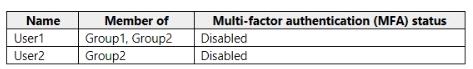 You have an Azure Active Directory (Azure AD) tenant that contains the users shown in the following table.