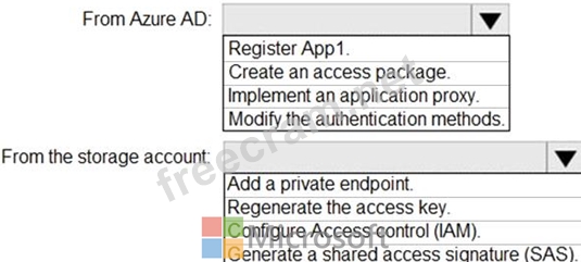 You need to enable App1 access to container1 by using Azure Active Directory (Azure AD) authentication.