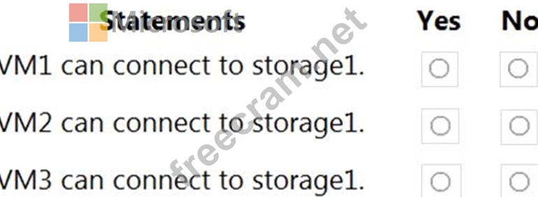 You have an Azure subscription that contains a storage account named storage1 and several virtual machines. The storage account and virtual machines are in the same Azure region. The network configurations of the virtual machines are shown in the following table.