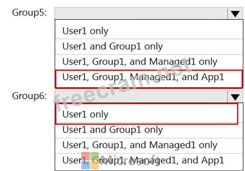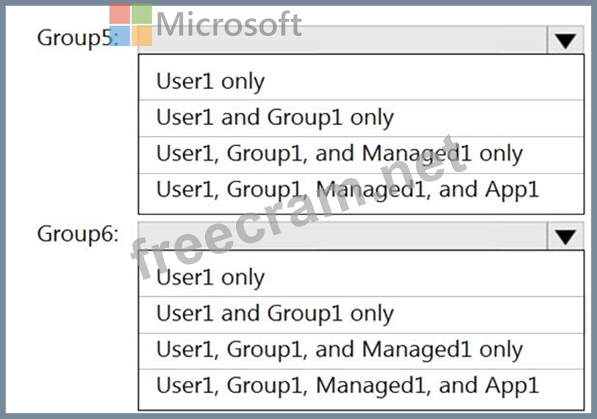 Which resources can you add to Group5 and Group6? To answer, select the appropriate options in the answer area.