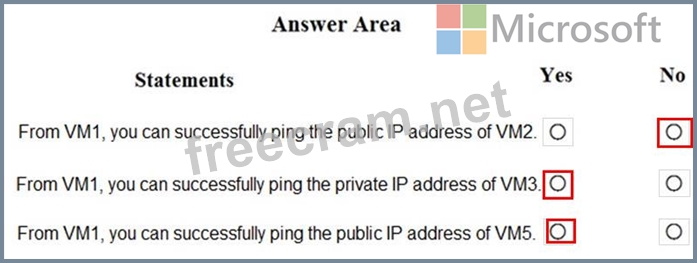 All virtual machines have the public IP addresses and the Web Server (IIS) role installed. The firewalls for each virtual machine allow ping requests and web requests.