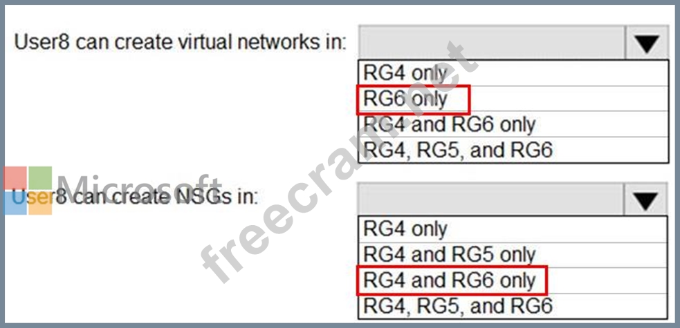 Question 79: You assign User8 the Owner role for RG4, RG5, and RG6. In wh...