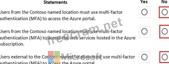 NO - External users from Contoso location are not required to use MFA for AZ portal