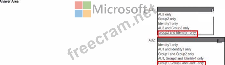 Which resources can be added to AU1 and AU2? To answer, select the appropriate options in the answer area.