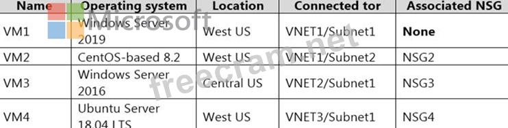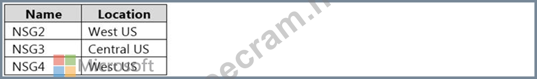 Subscription1 contains the network security groups (NSGs) shown in the following table.
