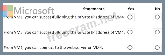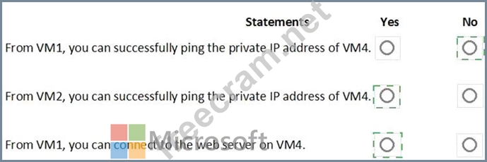 Box 1: No. VM4 is in Subnet13 which has NSG3 attached to it.