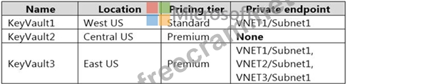 Subscription1 contains the Azure key vaults shown in the following table.
