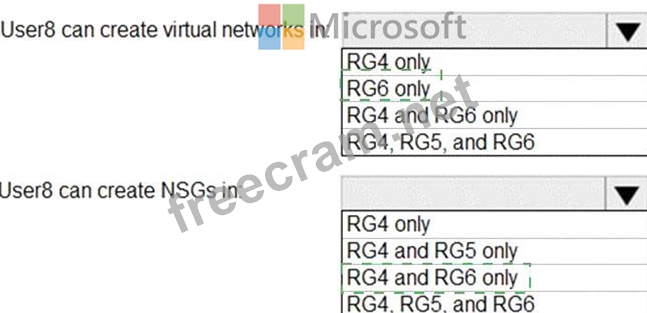 Question 74: You assign User8 the Owner role for RG4, RG5, and RG6. In wh...