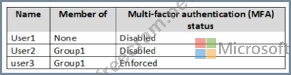 You have an Azure Active Directory (Azure AD) tenant named contoso.com that contains the users shown in the following table.
