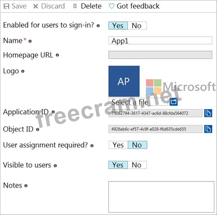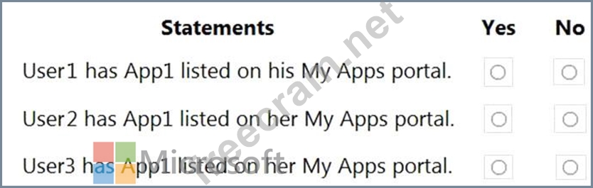In contoso.com, you register an enterprise application named App1 that has the following settings: