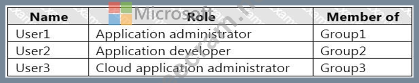 You have an Azure Active Directory (Azure AD) tenant named contoso.com that contains three security groups named Group1, Group2, and Group3 and the users shown in the following table.