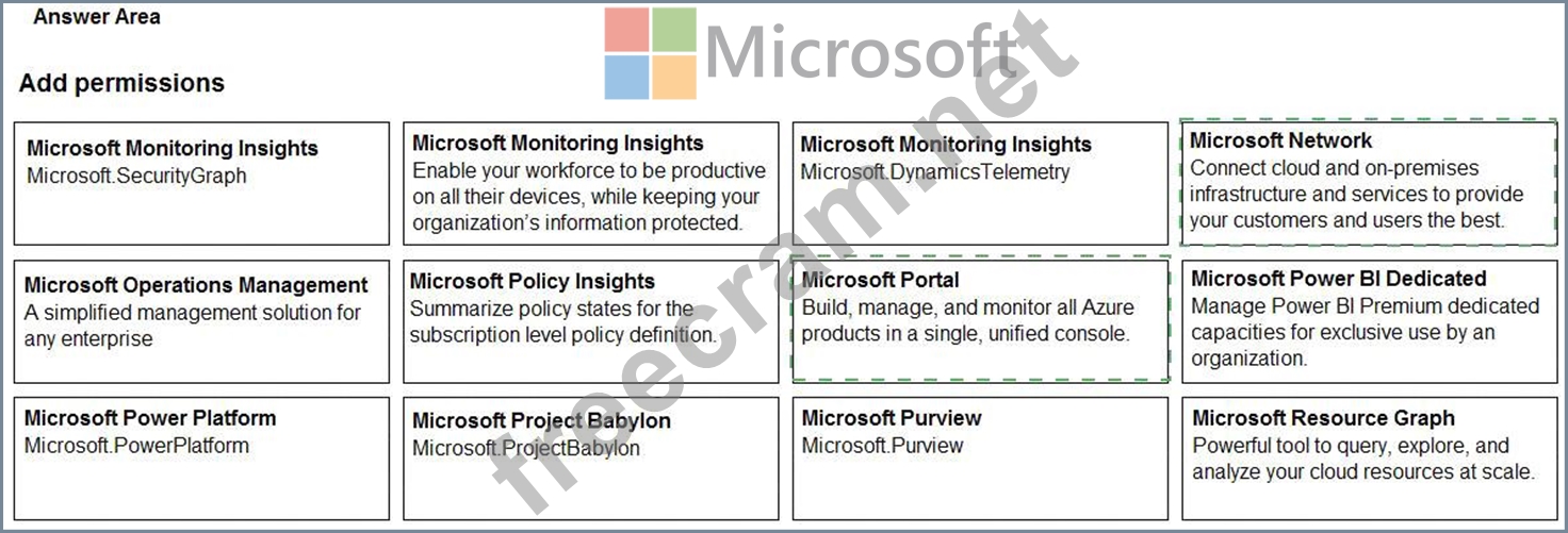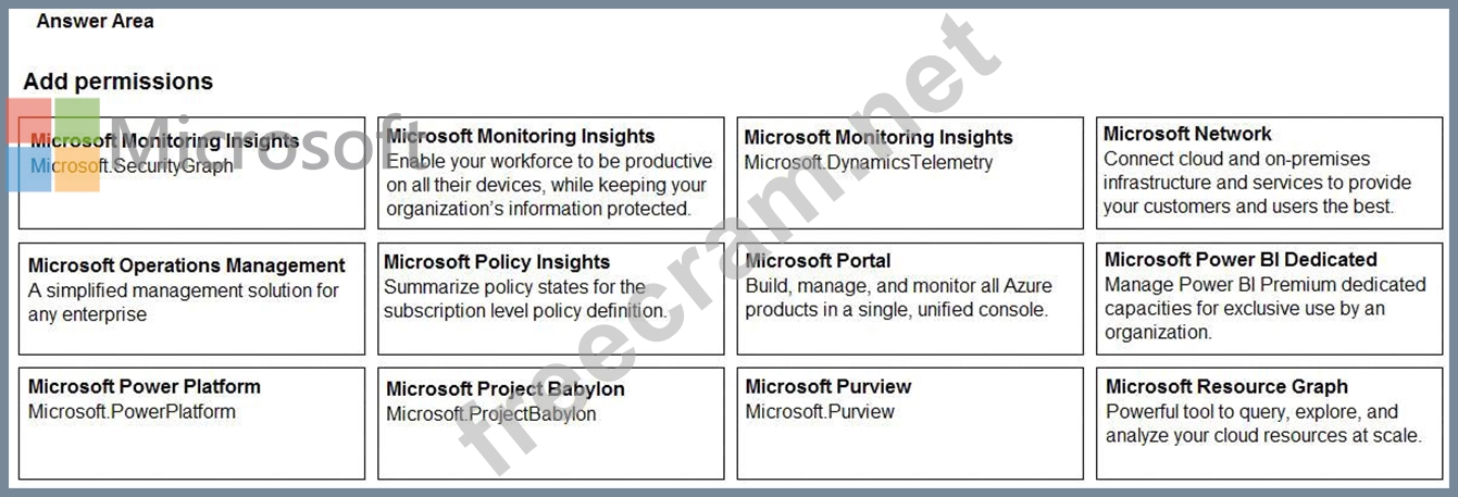 Which two permissions should you add to Role1? To answer, select the appropriate permission in the answer area.
