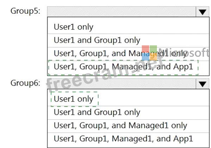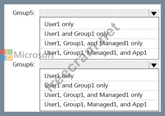Which resources can you add to Group5 and Group6? To answer, select the appropriate options in the answer area.
