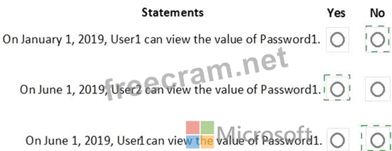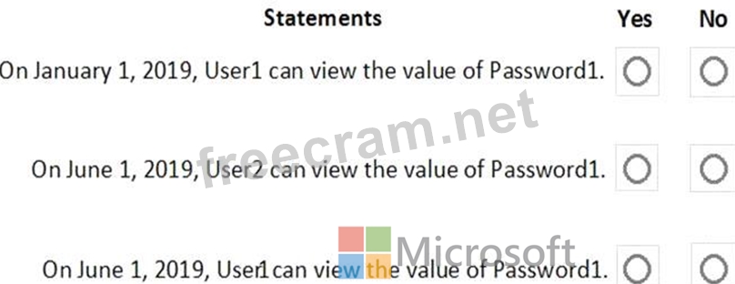 On January 1, 2019, you create a secret in Vault1. The secret is configured as shown in the exhibit. (Click the Exhibit tab.)