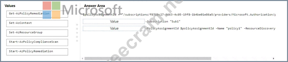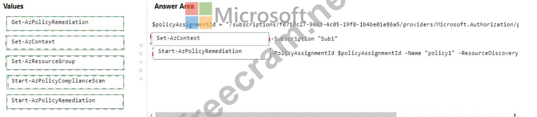 Authorization/f Value Set-AzContext -Subscription "Sub1" Value Start-AzPolicyRemediation