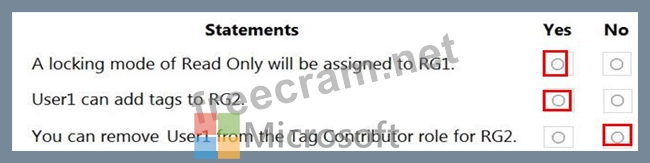2. RG2 is read-only and "The resource group is read only and tags on the resource group can't be modified. "