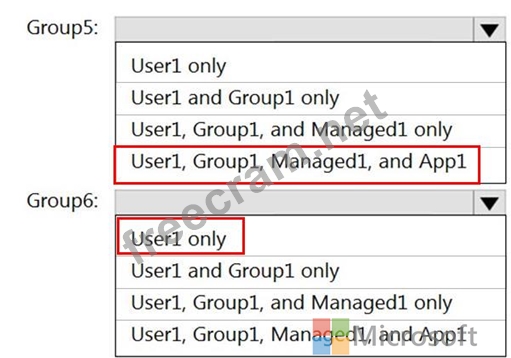 Which resources can you add to Group5 and Group6? To answer, select the appropriate options in the answer area.