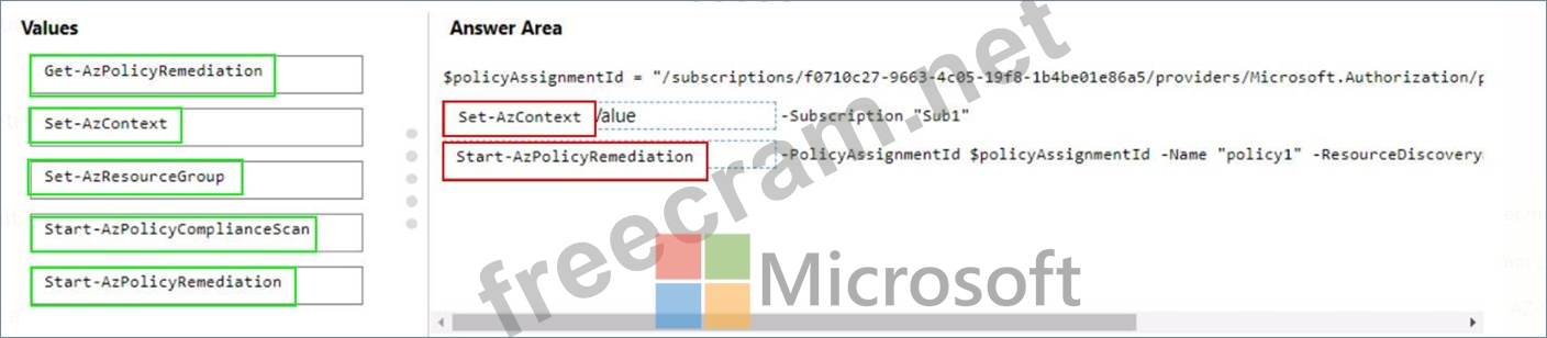 How should you complete the PowerShell script? To answer, drag the appropriate values to the correct targets. Each value may be used once, more than once, or not at all. You may need to drag the split bar between panes or scroll to view content.