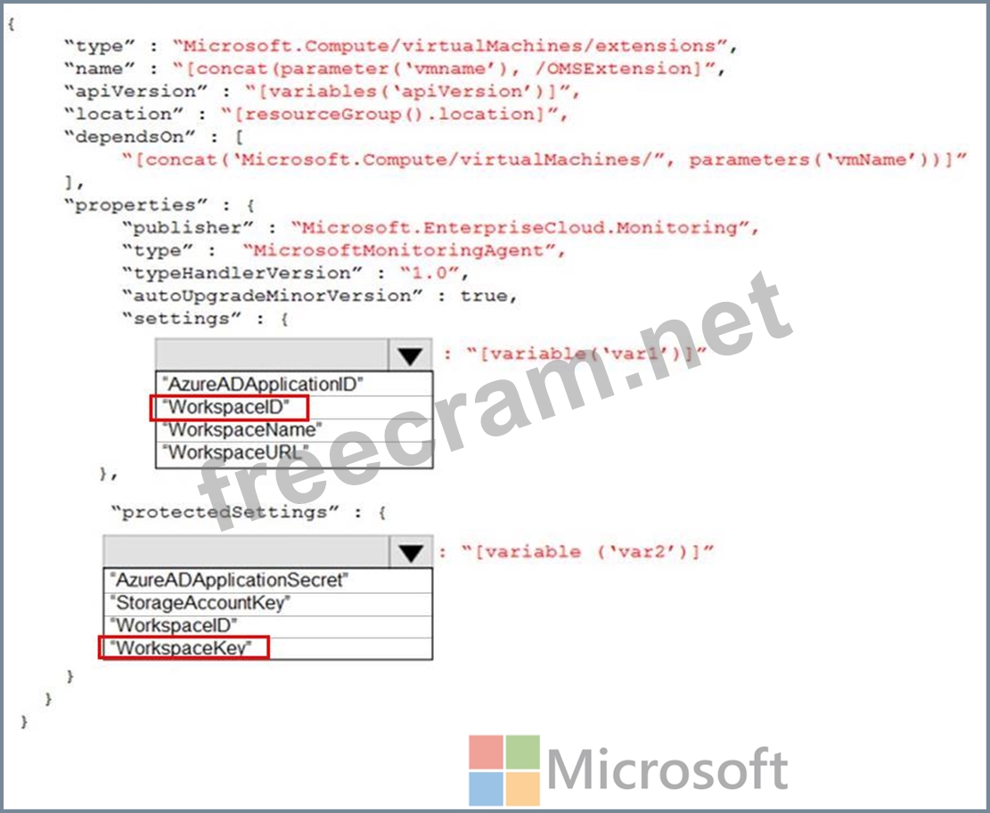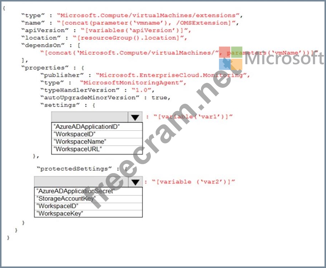 You need to automate the deployment of the Microsoft Monitoring Agent to all the servers by using an Azure Resource Manager template.