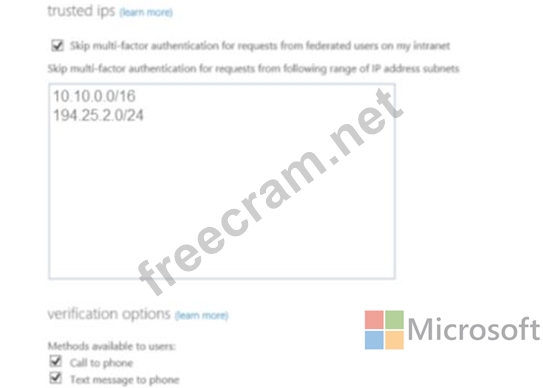 The MFA service settings are configured as shown in the exhibit. (Click the Exhibit tab.)
