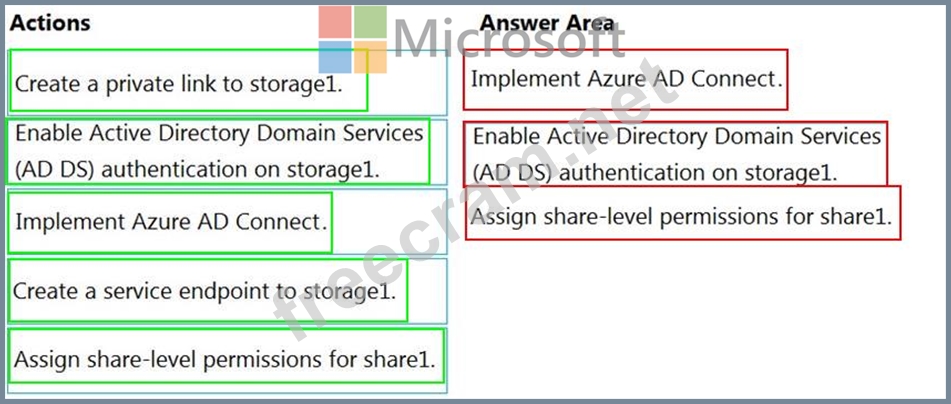 You have an Azure subscription that is linked to an Azure Active Directory (Azure AD) tenant named contoso.com. The tenant contains an Azure Storage account named storage1. Storage1 contains an Azure file share named share1.