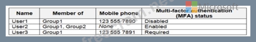 • No. User2 is a member of Group1 and Group2, but Group2 is excluded from the policy's assignment. Therefore, the policy does not apply to User2. Even if User2 signs in from an anonymous IP address, it won't trigger the password change requirement.